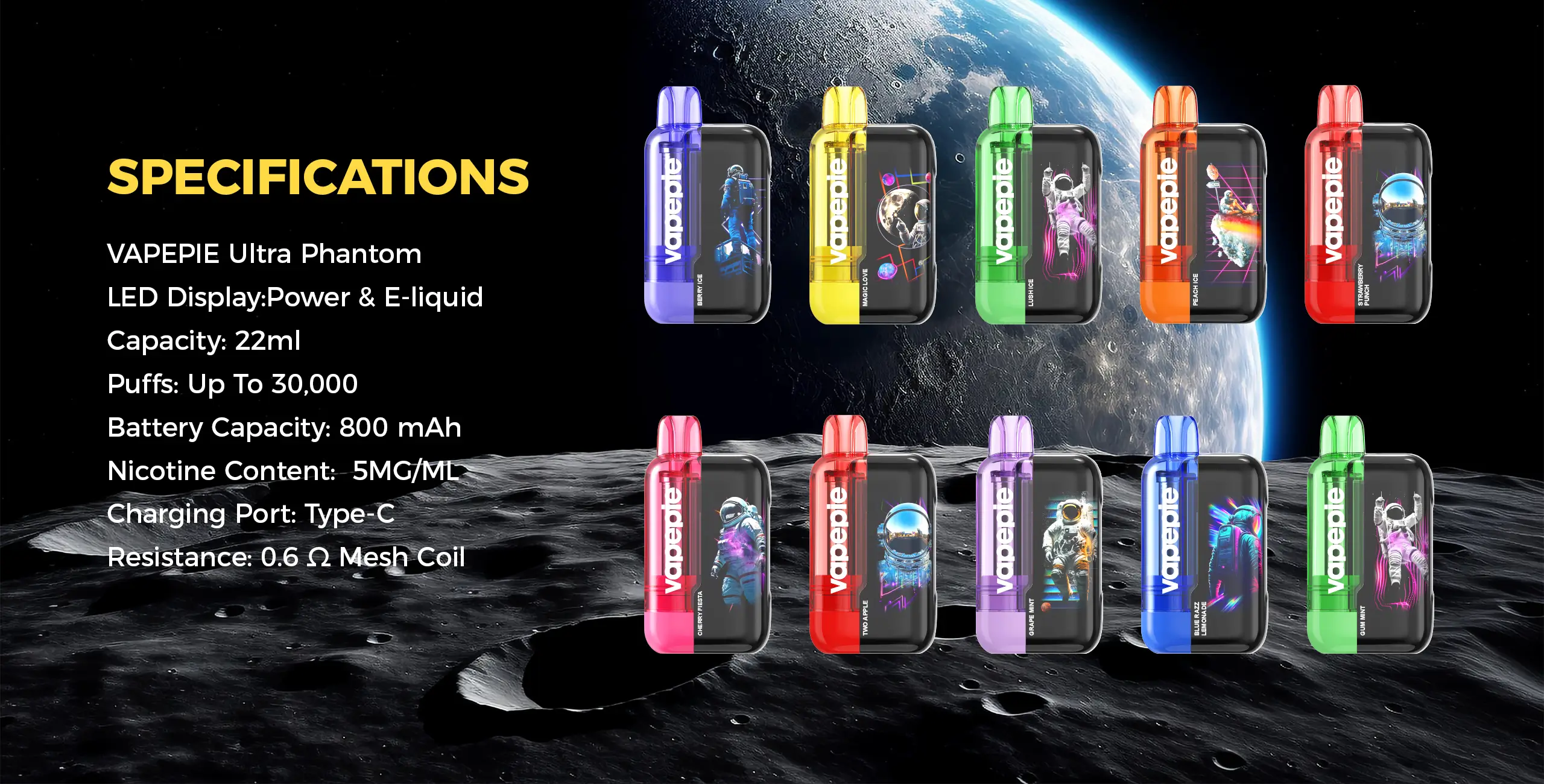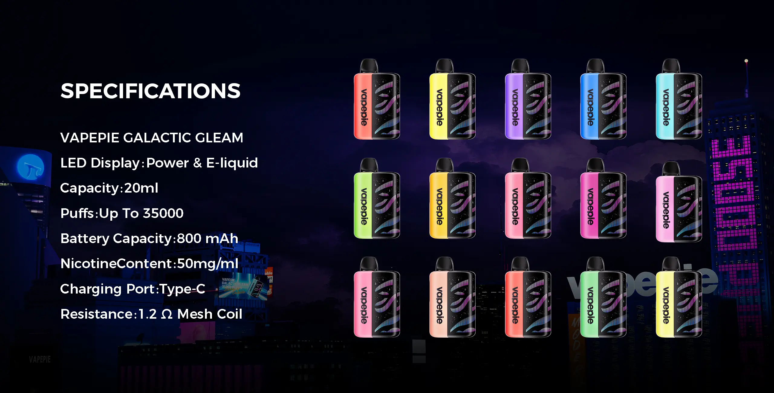 VAPEPIE Galactic Gleam 35000 Puffs Disposable Vape - Stunning Glow Effects,Massive Capacity